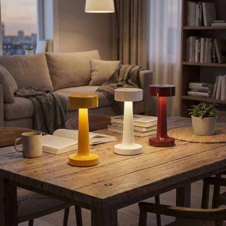 Evinizin her köşesinde, kafe ve restoranlarda hem dekorasyon hem aydınlatma amaçlı kullanılabilen, modern tasarım led ışıklı masa lambası.